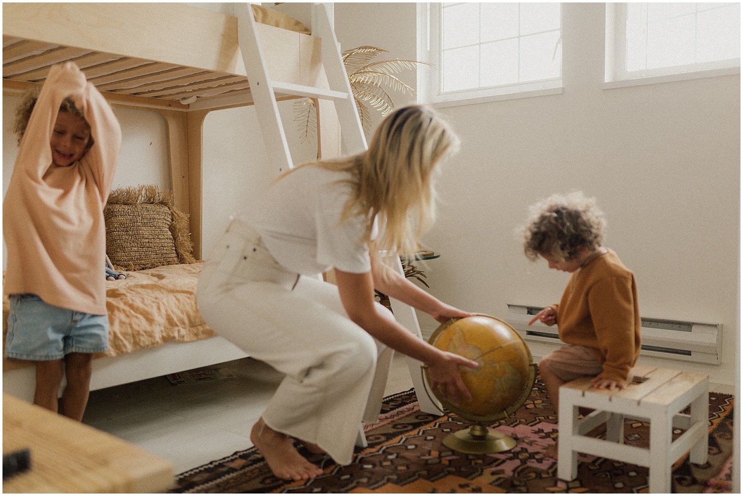 “It’s morning time!!!” Is the start to my day courtesy of Ziggy (3) Followed by “Quiet Ziggy I’m sleeping!” By Isaac (5). They share a room and sleep in the bottom bunk together so I totally get it. For some reason their legs never work in the morning so I carry Zig on my back and Isaac on my front downstairs, plop them down on the couch and I go make us smoothies. We open all the blinds and windows and turn a record on. Their current favourites are The Beach Boys, Queen, and Dolly Parton.