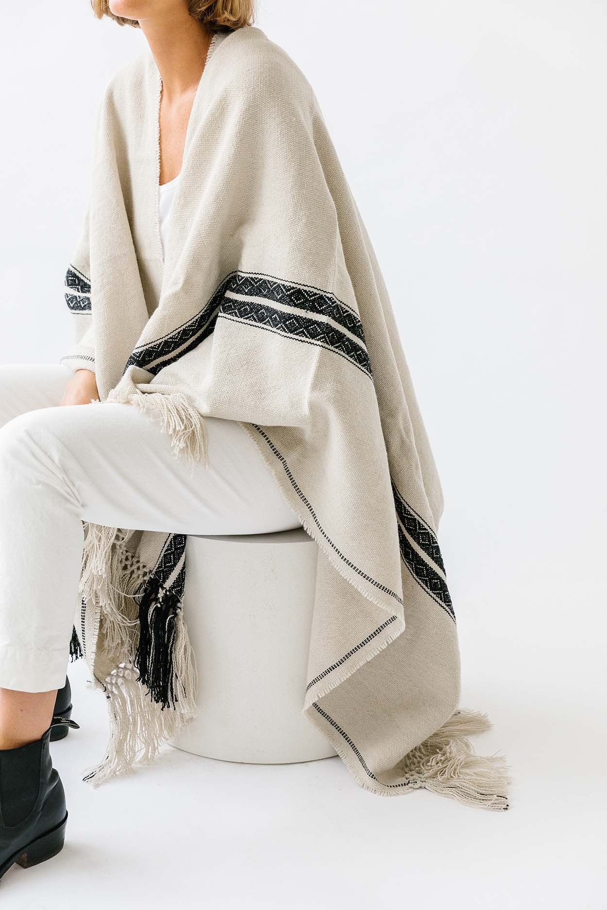 We also have our thicker, winter-style ponchos woven from a blend of llama’s and sheep’s wool and designed with a traditional stripe motif. If you’re heading this season to cooler climates these are the perfect companion – we especially love wrapping ourselves up in them for long travel journeys.